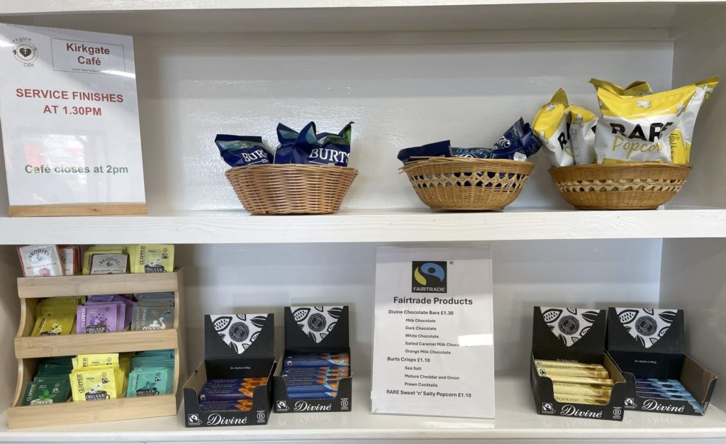 Liberton Kirk is also a Fair Trade Congregation, which means that the church and its organisations (including the Kirkgate Café) use fair trade tea and coffee and other fair-trade items where possible. There are some Fair Trade goods for sale in the Café – delicious bars of chocolate and tasty crisps. We encourage everybody to think about fair trade, helping people in other countries to make a decent living and feed their own families, and to look for the fair trade logo when they are shopping.