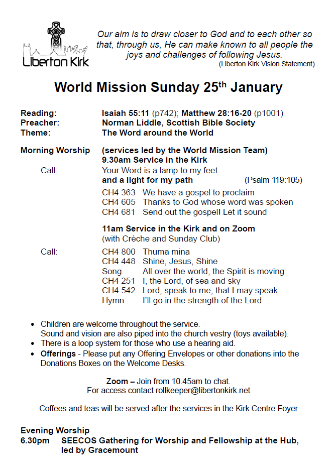 Notice Sheet 25th January 2026